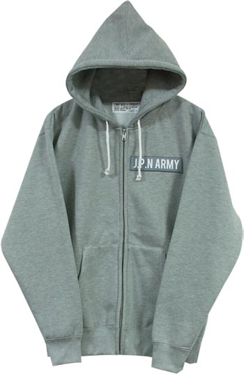 | Name.................J.P.N ARMY HOOD Size...................M,L,XL Color.................Gray Material.............65% Polyester 35% Cotton 10.3 oz Price.................¥ 9,450 (税込) |