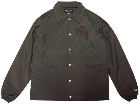 | No......................FW10-JK05 Name.................AREth×TBPR COACH JKT Size...................M Color.................Gray Price.................¥15,800(税込) ジャケット素材は、防水透湿素材を使用。フロントは、スナップ、裏地も吸収即乾素材です。スナップ裏には、ファスナーや脇下のベンチレーション、ドローコード有り。ポケット(ジップ付き)はフロントに2つと裏ポケットが1つです。 デザインは、壁画家の"KAMI”が担当。真ん中に配した獅子頭は、左右には小さく二つ巴(二つの組織が優劣がなく互いに張り合う)を完備。その鎖の中で獅子頭(アジアンプライド)を掲げ上げてます。獅子の毛を伸ばし広げることで、抑えられないエネルギーの拡大をイメージしています。 着丈:S-68 M-70 L-72 XL-74 身幅:S-57 M-59 L-61 XL-63 |