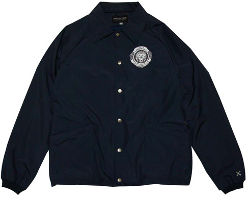 | No......................FW10-JK05 Name.................AREth×TBPR COACH JKT Size...................M Color.................Navy Price.................¥15,800(税込) ジャケット素材は、防水透湿素材を使用。フロントは、スナップ、裏地も吸収即乾素材です。スナップ裏には、ファスナーや脇下のベンチレーション、ドローコード有り。ポケット(ジップ付き)はフロントに2つと裏ポケットが1つです。 デザインは、壁画家の"KAMI”が担当。真ん中に配した獅子頭は、左右には小さく二つ巴(二つの組織が優劣がなく互いに張り合う)を完備。その鎖の中で獅子頭(アジアンプライド)を掲げ上げてます。獅子の毛を伸ばし広げることで、抑えられないエネルギーの拡大をイメージしています。 着丈:S-68 M-70 L-72 XL-74 身幅:S-57 M-59 L-61 XL-63 |